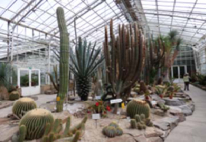 Vor allem bei schlechtem Wetter oder im Winter lohnt sich ein Besuch der dortigen Gewächshäuser bzw. des Seitenflügels des großen Gewächshauses. Die Schaugewächshäuser bestehen aus drei großen zentralen Hallen, von denen elf kleinere Flügel abzweigen.